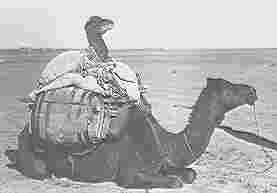 Port Augusta Dispatch September 1888.Wherever these Afghan cameleers settled, they lived in a separate part of town. Consequently many inland towns had three distinct sections, one for the Europeans, one for the Aborigines and a third section for the Afghans. Their areas became known as Afghan or Ghan Town. There was contact between the Aboriginal and Afghan groups but almost no contact between the Europeans and these two groups. Examples of this are well illustrated in Farina and Marree where even the cemeteries are divided along these lines. Marree, with its high concentration of Afghans, was soon referred to as Little Asia. It also became the centre for inland transport with camel strings leaving regularly for the Birdsville, Oodnadatta and Strzelecki tracks, Broken Hill, the Northern Territory and the Western Australian gold fields. They often suffered from racial prejudice as a result of their religion, culture or the economic competition they provided for a declining number of jobs. In 1884 nearly three hundred camels and fifty-six Afghans were landed at Port Augusta. The largest group landed in 1893 when four hundred camels and ninety-four men disembarked. During his election speech at Port Augusta, in March 1893, Alexander Poynton made it clear that he was against the importation of more Afghans and their camels. If elected 'he would put a prohibitive Poll Tax upon them'. A month later it was reported that 94 Afghans had landed at Port Augusta and 'meant business and money getting'. Contemporary opinions about their presence in the outback were not always very kind. Each Afghan community had its own leader. In Oodnadatta it was Abdul Kadir and in Marree it was Bejah Dervish. Bejah, decorated for his military service, came from Baluchistan and later took part with L.A. Wells in the Calvert Expedition of 1896. In these communities the Afghans continued to live as they had always done, following the Muslim religion and customs. Most Afghans who came to Australia were single or if married left their wives behind as they expected to return wealthy in the not too distant future. Many remained single but others married Aboriginal women. Very few married white women. Afghans provided almost all goods and services from South Australia to the Northern Territory. On a regular basis they left Marree, and later when the railhead was at Oodnadatta, with their camel teams for Stuart, later renamed Alice Springs. Some of the well known Afghans among them were Hector Mahomet, Peer Mahomet and Charlie Sadadeen. In 1933 Ernestine Hill wrote, 'Within the high tin walls of the Afghan camps in all towns of the north line, white women are living, the only ones in Australia who have blended to any extent with the alien in our midst. Renouncing the association of the women of their own race, they have forsaken their own religion for the teachings of the Prophet and the life of the cities for the desert trail. Several of these have made the pilgrimage to Mecca'. In 1880 Sub Inspector B.C. Besley suggested that the police in the north should use camels for the collection of statistics and census forms. His suggestion was taken up and camels were from then on used by all police in the north for all kinds of work. The Marree police used camels to patrol the outback until 1949.