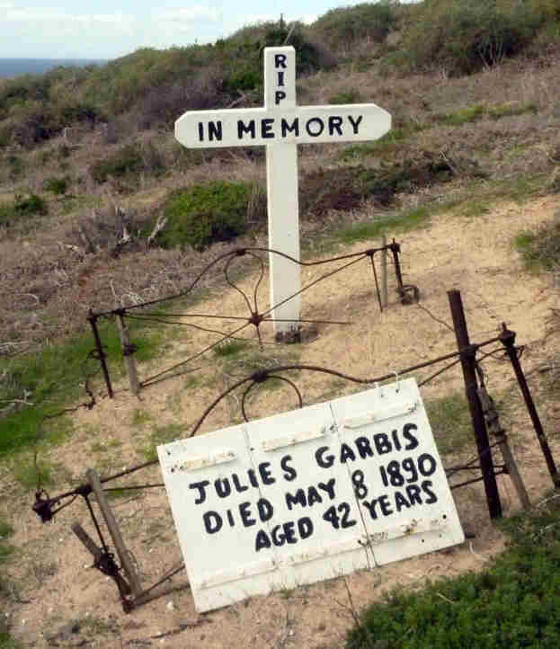 Julies Garbis was the foreman of a guano party. He died on 8 May 1890, aged 42. The old photo (1905) was also taken by A Searcy, President of the Marine Board of SA.