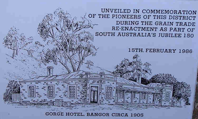 Unfortunately there was no road as yet through the Port Germein Gorge, at the time known as Back Creek Gorge. For this reason it was cheaper to import timber rather than utilise the abundance of native timber from the Wirrabara forest. When finally in 1879 a track of sorts was made numerous teamsters and farmers used it to supply the coastal settlements with timber and wheat. Naturally a hotel was established in due course and when Thomas Turner opened it in 1888 overnight stops by these teamsters, farmers and other travellers often took two or three days. Three years later M.J.R. Wake ran the hotel until 1901. It was closed in 1911.