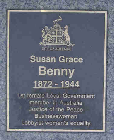 While serving on the council, Grace achieved several improvements at Brighton. Among them were the opening of a cliff to enable free access to the beach, installation of electric lights and the allotment of reserves as children's playground and public garden. She successfully supported the abolition of segregated sea-bathing making it possible for families to swim together. Whereas legislators commonly believed that women were incapable of attending night meetings, Benny regularly did so. In 1921 Susan and Benjamin celebrated their Silver Wedding anniversary.
