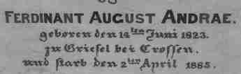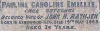 Below are SOME of the headstones of the Lutheran Cemetery in Birdwood. In an attempt to save as much space as possible and increase the speed of downloading, only part of the stone is displayed. Flinders Ranges Research has a full photograph of each of these, and many others as well.