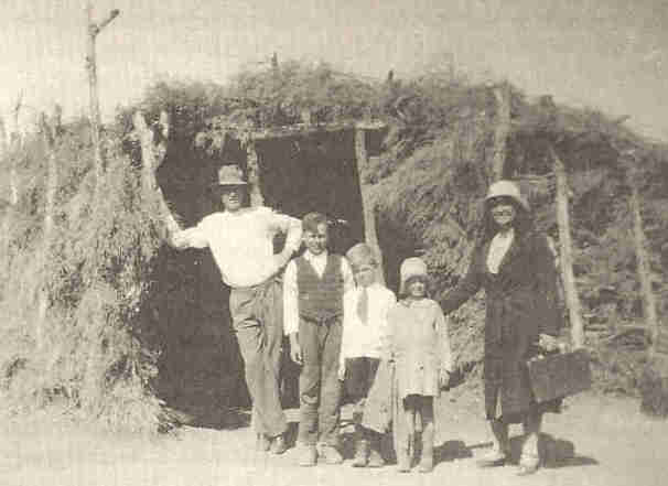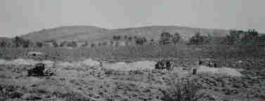 When William (Bill) Alexander Kittel, his wife Edith Maud, nee Gill, and their nine children arrived on the field from Iron Knob in 1930, they found about twenty-five people already living there. Most of these families lived in dugout type houses, with brush verandahs for shade to avoid the extreme summer heat. Life was very hard on this field. Once a week the women had to walk more than a kilometre with all the family's washing to a nearby spring in the hope of cleaning and drying it before the return trip was undertaken, in time to prepare the family's evening meal on an open fire.