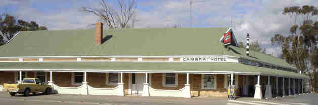 Cambrai, in the Hundred of Angas, which was named after George Fife Angas and proclaimed in 1860, is about 10 kilometres south of Sedan. It was laid out as Rhine Villa by Abel Pollard Skinner in 1882 about a kilometre north of Rhine River which has its origin in the Eden Valley area. The whole area being part of the Murray Flats which include Towitta, Sedan, Cambrai, Angas Valley and Milendella.