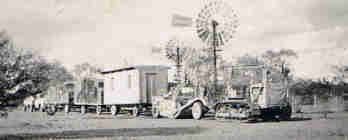 After their honeymoon it was back to South Australia. This time to it was to be Copley and to a life of continuous moving, isolation and coping with even fewer facilities than those available on the coalfield. Don had decided that he would go dam and well sinking. His first job was at Mulgaria Station near Farina and owned by Afghan Gool Mohamet and family. When after a few months work the tractor broke down it had to be taken on a slow 650 kilometre trip south to Adelaide. While waiting for parts and the repairs to be completed Don worked as a taxi driver while Dorothy worked in the Mail Order department of Myer. After the repairs had been done it was another slow trip back to continue the job on Mulgaria Station. A few months later Dorothy went back to Adelaide by herself to stay with Dons parents before giving birth to their first child Marilyn on 20 January 1949. After completing the job at Mulgaria the young Knuckey family moved back to Copley and lived in the old police station. Don went truck driving on the coalfield and also bought a bus to do a run between Leigh Creek and Orroroo. On weekends they often went visiting people or different places. Some of the favourite sites were Aroona Waters, Depot Springs, Myrtle Springs, Angepena and Angorichina Hostel. They even tried their luck on the Boolooroo goldfield. When the police building was taken away at short notice Don built a large shed to be used as their house. In December 1950 Dorothy went down to Adelaide again to have her second child Anne at the Memorial Hospital on 14 January 1951. While in hospital Don came to visit her with the news that he had sold up everything, bought a tractor and was going back to dam and well sinking. Don preferred the peace and quiet of the bush, where he would be his own boss, working in the wide open spaces of the outback, camping under the stars with an occasional dust or rain storm thrown in for added excitement. Even Dorothy had a good measure of Wanderlust herself which she had probably inherited from her uncle Ernest Church. Being much older than his brother Charles, he had been to the Californian gold rushes and later to Kalgoorlie in Western Australia, where he made a fortune. He paid for his brother Charles to go to boarding school, which came to a sad and sudden stop when on his way home from attending a meeting he was bashed up and robbed. He died from the injuries and left a wife and 6 children. After some further work at Mulgaria other jobs were undertaken at Mount Lyndhurst, Witchelina, Whyalla and Murnpeowie Stations. Come December 1952 Dorothy made her now familiar trip to Adelaide to give birth to her third child Christine on 15 January 1953. Barely six months later the next job turned out to be in Queensland where dams had to be excavated on Bulloo Downs and Norley Stations.