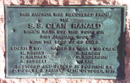 Anchor of the Clan Ranald and a plaque commemorates all 64 crew members of the sunken ship. The sinking of the Clan Ranald in January 1909 was one of the worst maritime disasters in South Australian history.