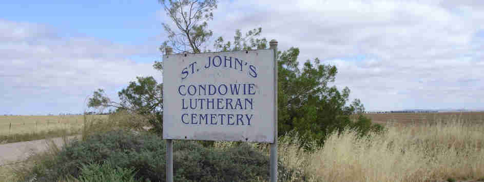Below are some of the headstones of the St John Cemetery, Condowie. In an attempt to save as much space as possible and increase the speed of downloading, only part of the stone is displayed. Flinders Ranges Research has a full photograph of each of these, and many others as well.