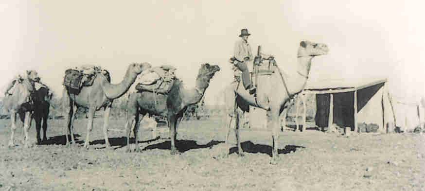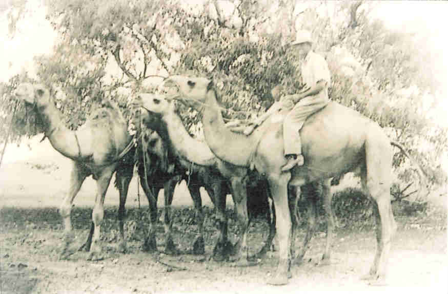 Netting rider with camel team, 1930s