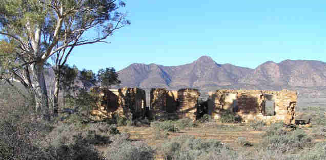 Ruins of Edeowie Hotel. On 8 February 1866, Robert Gladstone, a pensioned shepherd, died at the hotel. Patrick O'Hare, aged 35, died on 18 December 1868. With the drought still as bad as before, conditions in the north deteriorated rapidly. Many stations were almost deserted after sheep and cattle had died by the thousands. Whereas the population in and around Edeowie in 1864 had been 316 people, by 1866 this had been reduced to thirty-six, made up of fifteen men, nine women and twelve children. Needless to say that not too many new buildings were started which resulted in Thomas Baker, builder and contractor of Edeowie, being declared insolvent on 1 February 1867. When the drought finally broke in 1868, the country was in a sorry state but both miners and pastoralist returned. They picked up where they had left off or started all over again, including Edeowie station manager, David Walter. The hotel changed hands with Charles Jones becoming the new publican. On 22 July tenders were called for the renewal of mail deliveries between Port Augusta and Edeowie. By the end of 1869 a fortnightly mail contract between Edeowie and Mount Margaret, via Beltana Station was advertised and taken up by E. Tracey and A. McInnes for $800 per annum. To improve travelling conditions for men and beast in the north, the government offered a lease for sale near the town for the term of fourteen years at $10 per year. The conditions were that the lessee was required to erect a whim within three months and also to build a house of public accommodation. At the same time though the lessee was allowed to make a small charge for the water used by travelling stock. By 1870 conditions had improved enough in the north for the government to open several new post offices, including one at Edeowie, Hookina and Saltia. That year also saw a change at the hotel, the new publican this time being Henry Daw Ryan who kept it until September 1872 when it was transferred to Francis Smedley. Ryan had lived in the north for several years and was well acquainted with its conditions. As early as 1868, while at Yudanamutana and working as a mail contractor, he had tendered for the building of a new police station for $350. at Hamilton Creek. A year later he was at Mount Fitton and reported to Police Trooper Robert Whitbread of the Mount Freeling police station that the Aborigines had stolen some hundred sheep, rations and cooking utensils from shepherds' huts on the Mount Fitton run. John Kirwan operated the store and Alex G. Warwick was appointed overseer at the station. Kirwan had run an eating house with his wife Jane at Wilpena since 1862. This was now continued by his son Richard. After a year at Edeowie John shot and killed himself but his wife carried on with the store until 1875.
