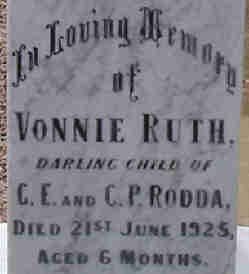 Below are SOME of the headstones of the Greens Plains Cemetery. In an attempt to save as much space as possible and increase the speed of downloading, only part of the stone is displayed. Flinders Ranges Research has a full photograph of each of these, and many others as well.