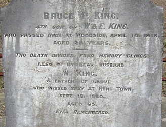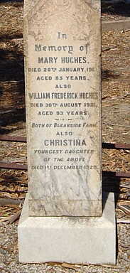 Inverbrackie CemeteryIn 1866 Inverbrackie was listed as a small village near Woodside in the Adelaide Hills. It had a 'Scotch kirk and a manse' the residence of pastor J. McBean. The population was small and chiefly engaged in argricultural and gardening pursuits. In its early days the small settlement was often visited by the Rev Ralph Drummond, who was the first Minister of the United Church of Scotland in South Australia. A land grant of twenty acres to build a church and manse was made on 12 July 1848 naming as Trustees, Alexander Lorimer, Robert Farly, Abraham Shannon and Andrew Murdoch. The town had a good number of migrants from Scotland and Daniel Baruh who had graduated from Edinburgh University practised for some years at Inverbrackie before moving to Mount Pleasant. He took over from Dr William Innes who had died in 1849. As early as 1846 Thomas Payne ran a hotel and Dr Baruh looked also after the registrations of births, deaths and marriages. While at Inverbrackie, Dr Andreas Vonnida and Auguste Roder were married by Baruh in 1858. Vonnida later moved to Blinman and became a shareholder in the Sliding Rock Mining Company. In 1927 it was reported that the church was in ruin and thickly covered with ivy, making it reminicent of the historic church ruins in England. The stone incribed with Caledonian Church 1848 was still visible.
