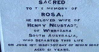 Below are SOME of the headstones of the Jewish Cemetery. In an attempt to save as much space as possible and increase the speed of downloading, only part of the stone is displayed. Flinders Ranges Research has a full photograph of each of these, and many others as well.