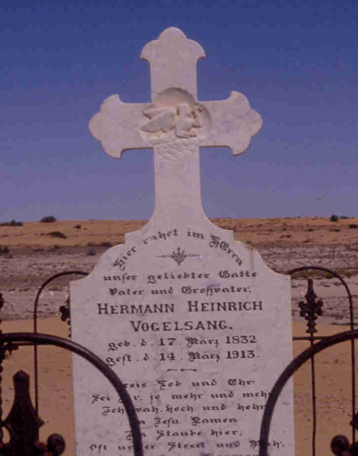 Below are the headstones of the Killalpaninna Cemetery. In an attempt to save as much space as possible and increase the speed of downloading, only part of the stone is displayed. Flinders Ranges Research has a full photograph of each of these, and many others as well.