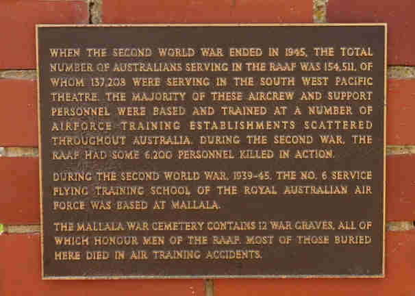 the Mallala War Cemetery. In an attempt to save as much space as possible and increase the speed of downloading, only part of the stone is displayed. Flinders Ranges Research has a full photograph of each of these, and many others as well.