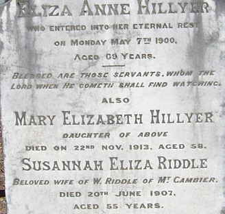 Below are SOME of the headstones of the McLaren Vale Congregational Church Cemetery. In an attempt to save as much space as possible and increase the speed of downloading, only part of the stone is displayed. Flinders Ranges Research has a full photograph of each of these, and many others as well.