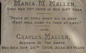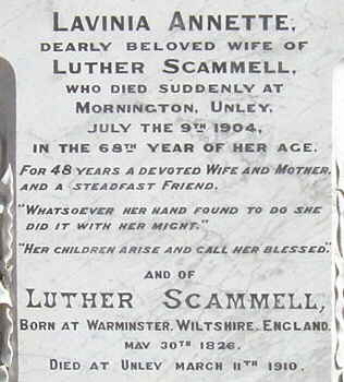 Below are SOME of the headstones of the Mitcham Anglican Cemetery at Mitcham. Previously to 1981 it was called Church of England Cemetery established in 1853. It first burial took place on 20 September 1853. In an attempt to save as much space as possible and increase the speed of downloading, only part of the stone is displayed. Flinders Ranges Research has a full photograph of each of these, and many others as well. There is also the West Mitcham Primitive Methodist Cemetery.