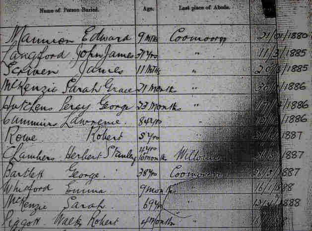 Below are some of the headstones of the Morchard Cemetery. In an attempt to save as much space as possible and increase the speed of downloading, only part of the stone is displayed. Flinders Ranges Research has a full photograph of each of these, and many others.