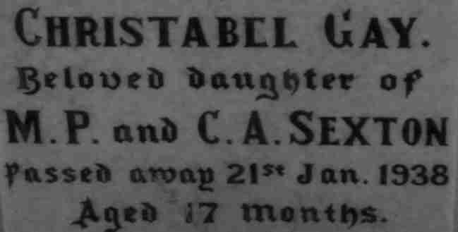 Alice Maude Moffatt on 22 March 1882 aged 13 months, daughter of Robert Moffatt, blacksmith of Mount Lyndhurst.