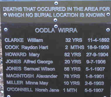 Oodlawirra Cemetery.Below are SOME of the headstones of the Oodlawirra Cemetery. In an attempt to save as much space as possible and increase the speed of downloading, only part of the stone is displayed. Flinders Ranges Research has a full photograph of each of these, and many others as well.