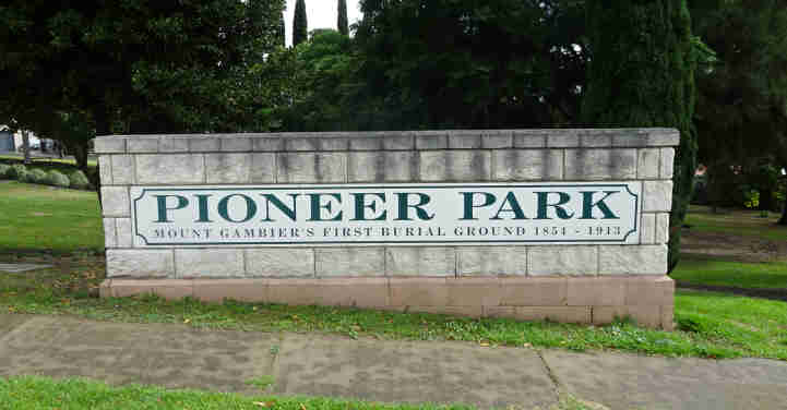 The land for this cemetry was donated by H Cunningham. The first burial took place in 1854 when Frank Hunter was laid to rest after having been killed by an angry bull. About 600 people have been buried here, including some Aborigines. In 1864 this private cemetery was transferred to the District Council of Mount Gambier West. The cemetery was destroyed by fire in 1914 and officially closed in 1938. A year later it was dedicated as Parkland and all trees and headstones removed. ***