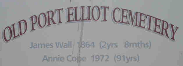 Old Port Elliot CemeteryBelow are SOME of the headstones of the Old Port Elliot Cemetery. In an attempt to save as much space as possible and increase the speed of downloading, only part of the stone is displayed. Flinders Ranges Research has a full photograph of each of these, and many others as well.