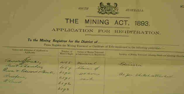 The Black Range Blocks Silver and Copper Mining Syndicate, with a capital of $1,000 had four hundred acres at Blackfellows Creek and found little copper but no silver. The Great Winnowie Central Silver Mining Company Ltd with $100,000 and two claims at Ediacara had among its directors J.W. Downer, L. Scammell, W. Milne, H.W. Hughes and L.A. Jessop. Unfortunately a large number of parliamentarians on the board of directors did not necessarily mean that large amounts of silver would be found. At times one could be forgiven for thinking that there would be no more land left to stake a mineral claim on. During the first two weeks of March 1888 more than 450 mineral application were made for sections in the Northern Flinders Ranges. Many familiar names appeared time and again on the application forms, for instance E.H. Blewett, A. and E. Bralla T.C. Cotter, C.M. and S.C. Hantke, C. Mottram, Edith Gason, E. and A. Hantke, F.M. and Helen Buttfield, Leslie Buttfield, A. Braddock, Anna and Marion Doig, Victor Hantke and James and Michael Darmody. All these claims and mines needed huge amounts of timber. It was used for the miners' personal fires, their huts, timbering of shafts and drives, but most of all for the boilers and furnaces. As it turned out, there seemed to be both enough land and timber to satisfy everybody's demand. However on 4 March Corporal Richards of the Beltana police station asked his superiors in Port Augusta to supply him with 'Bills or Placards, warning people against cutting gum timber in the neighbourhood of the Winnowie mines'. Obviously he was concerned with the rapid destruction of this natural resource, which was also against the law. Land to peg out mineral claims was still available though. There was even land available which was supposed to contain silver. As late as June 1888 the Mount James Consolidated Silver Mining Company Ltd. was formed to work the nine claims it had bought from Frederick Hayward. These claims were situated near Mount James, north of the Ediacara silver field. Most of the shareholders in this venture were from Adelaide. Only two residents, A.E. Russell and Jason A. O'Brien, both of Marree, showed enough faith in it to be persuaded to buy shares in this company. Just as well, as six months later the company had ceased to exist. The Mount James Consolidated was incorporated at a time when silvermania and its excessive speculation on both the Adelaide Stock Exchange and on the silver fields had run their course, for more than one reason. During July 1888 it was reported from Beltana that 'The silver boom being over, the gold fever has broken out, and the excitement is immense. The new discovery is about 25 miles north of here and it is reported that there are about 50 men now there, many of whom are finding gold. However, I would advise anyone in work to be very cautious about leaving for the field until the value of the find is proved. At present it is confined to a very limited extent of country. The silver mines are being deserted for the gold fields, and all operations will have to be suspended, I expect, for the present. There is one store open on the gold field already, and before Wednesday there will be three, and one, if not two, butchers will be at work. Wood is plentiful, and water can be got by carting a few miles'. As usual not everyone believed that the silverboom was over. The very day the above report was written the Puttapa Mining Company Ltd. was formed with an office in Beltana and a proposed capital of $4,000. It had five claims, about twelve kilometres north of Beltana. Some reports were still hopeful and even encouraging, particularly as most mines on the Ediacara field and the Winnowie field were still yielding good quality and quantity ore. At the Ediacara mine there were still four hundred bags of ore at grass awaiting transport. The company later had some twenty tons of ore sent to Germany for treatment. ![]() By September though most of the mining news of the Northern Flinders Ranges had disappeared from the newspapers. From now on most of the news which was printed was mainly bad news. On 20 October 1888 the Beltana-Winnowie Silver Mining Syndicate held a shareholders' meeting at Beltana. The news which they were given was decidedly bad. The men who had been working their mine were discharged, Mr Hantke, one of the directors resigned and all work was to be stopped. Other companies tried to call in money on unpaid calls under threat of forfeiting the shares. Others tried to restructure their companies in an effort to stay afloat. On 14 November 1889 the Ediacara Silver Mining Company Ltd. for example became the New Ediacara Silver Mining Company N.L.48 This time it hoped to raise a capital of $160,000 with the issue of 16,000 shares of $10 each. Most companies, like the Great Comstock were just wound up. With mining activity slowly decreasing, the demand for firewood also decreased. Even so Mr Goyder still found it necessary to remind the police at Beltana and other mining towns 'to take every precaution to prevent the holders of licences or others from cutting or destroying sandalwood and to prosecute same with the utmost rigor of the law'. During January 1890 the New Ediacara mine was inspected by two of the company's directors from Adelaide. They made a minute inspection of both the underground and surface workings. At the conclusion of their visit they both expressed satisfaction with the progress and prospects of their mine, including the site fixed for the concentration plant, capable of treating ten tons per day. The carpenters at the mine had nearly finished the substantial five-roomed house to be used for the residence of the mine manager and as his office. His old house was to be converted into a blacksmith and carpenters' shop. Underground, at a depth of about seventeen metres, a winze had been erected, and from both the stopes and shafts a fair quantity of ore had already been raised, some of it by old ex-Bu