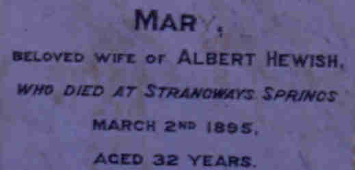 Mary Hewish, nee Carn, was born at Sliding Rock on 1 April 1863. Her daughter Elsie Coultash was also born there in 1895 and Christened by the Rev. Robert Mitchel at the Smith of Dunesk. Mary eventually married Alfred Hewish in 1888. His brother, Andrew had joined the Telegraph Department on 17 August 1873. He served the department in many different places. On 7 March 1885 Andrew Hewish, who was by that time a JP left Farina to take charge of the Strangways Springs telegraph station. This had recently been completed as one of the 12 repeater stations on the Overland Telegraph line. Although in the middle of nowhere there was already an eating house and several other buildings. Andrews next appointment was at Oodnadatta where he became the station master and registrar under the marriage Act on 16 August 1893. He died 5 years later on 12 June 1898 at the age of 44. He was buried at Oodnadatta. According to his boss, Charles Todd, Andrew Hewish had been a good officer. Meanwhile Albert stayed at Strangways Springs but later moved to Beltana.
