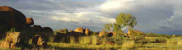 To visit Arltunga be prepared for a 250 km round trip to get back to the highway. Once back on the highway it is a further 9 km to see Peter Egerton Warburtons monument on the left, just before Burt Creek. A further 60 km north a stop is recommended at Ryan Well. Edward Ryan, a well sinker, accompanied John McKinlay on his 1866 wet season survey of Arnhem Land and George Goyder on his survey of Palmerston, later named Darwin, in 1868. In 1885 he began sinking wells, vital to the settlement of arid Central Australia. Ryan Well was dug in 1889 and Glen Maggie station, established in 1914 by Sam Nicker, grew around it. The next site of interest is Ti Tree farm, not to be mistaken for Ti Tree Hotel which is another 15 km. Having driven just 60 km since Ryans Well one would not expect to see acres of grape vines, as green as green can be. Take a left turn and have a look, a cold drink and sample some of the local products. After the farm experience it is only 36 km to get to the Central Mount Stuart turn off, just across Scull Creek where some 70 Aboriginal men, women and children were murdered. Stuart, William Kekwick and Ben Head were the first Europeans to sight Central Australia on Sunday 22 April 1860. Stuart wrote in his diary; Today I find from my observations of the sun that I am now camped in the centre of Australia. The next day he and Kekwick took a flag and went to the top but found it much higher and more difficult to ascent that I anticipated He thought it to be as high as Mount Serle, if not higher. Stuart named it Mount Sturt, in honour of his friend Charles Sturt but the name was later changed. From here the road goes via Barrow Creek, Wycliffe Well and Wauchope which was named after John Wylie Wauchope who worked on the OTL for the full time of its construction. For a short time the area was important as a mining centre of Wolfram which was mined especially during WWII by Italians, then Chinese and finally Italians again. The Wauchope hotel opened in 1939. The next attraction is a further 10 kilometres on where the Devils Marbles can be admired. These granite boulders owe their shape to millions of years of chemical weathering and erosion. According to Aboriginal legends they are the Dreaming Place of the Warramunga who believe them to be the eggs of the Rainbow Serpent. Dr Renner wrote in his diary on 16 March 1872; that the great granite boulders rest one above the other (in the most frightful shapes) some like loaves of bread, heaped one over the other.