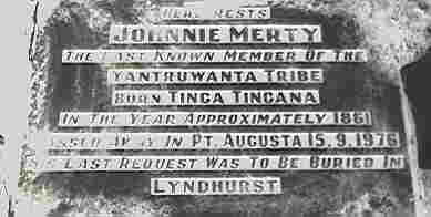 There are no natural springs, although nearly all the year around limited soakage can be obtained by shallow sinking in the creeks. The road to Caraweena is very heavy all the way, and one place over the creek is called the 'bad crossing'. 'One gentleman told me he had known two or three wagons taking a whole day to get from one side of the creek to the other, and after going over it I can imagine that a good imperial quart of wrath would not adequately represent the amount expended by those in charge of the teams. All the stores are brought by teams from Farina, and the wool is carted to the same station. The price paid per ton is 4 pounds. There is a good deal of last year's wool still at Monte Collina waiting for teams. The surveyed railway route now left the Strzelecki, and as it could only be followed on horseback the Chairman Mr Hancock accepted the offer of Mr Sells, and remained behind for the purpose of riding over it the next day. We were warned against 'barcoo', an epidemic which is very prevalent when the Cooper is in flood. There are several high sand ridges running north and south. Mr Prior is at present in charge looking after the improvements for the Government. He extended the utmost amount of courtesy, and with Mrs Prior and family, the first lady and children we have seen, a very pleasant hour or so was spent. Here we found M Hancock, who had reached the station the previous evening. His ride of thirty-five miles did not seem to have affected him, although the day had been very hot'. In 1892 the Tinga Tingana run was taken up by the Warren family who already had the Anna Creek run. They stocked Tinga Tingana with 500 heads of cattle. Unfortunately for them, they in turn were forced to abandon it in 1894 due to the drought and the millions of rabbits. The government now stopped the issue of rations to the Aboriginal workers which resulted in the death of Maggie, an old blind Aboriginal woman, who had looked after King, of the Burke and Wills disastrous expedition in 1861. The last full-blood Yantruwanta man, Johnnie Merty, born at Tinga Tingana, died in 1976, aged well over 100 years and was buried at Lyndhurst.