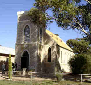 The Baptismal font is of Italian marble and has the form of an angel standing on a pedestal and offering the water in the basin. The Crucifix is also of Italian marble. Both of these items plus the carpet were a gift of the women of the congregation. This fine building with its tower and choir gallery clearly shows that these Lutherans were willing to pay and work hard for what they believed. When the Hundred of Monarto was proclaimed and opened for settlement in 1847 many Germans moved to it to take up farming. They built their houses of pug and pine, later to be replaced by more solid stone structures. Before they could start farming the land had to be cleared which was a back breaking job with the primitive equipment in use at that time. It was not until Mullenising was introduced that this became a little easier. When the land was finally cleared it was ready for ploughing. Before the introduction of the stump jump plough and harvesting without the Ridley Stripper both jobs were time consuming and arduous. Slowly enough Lutherans established themselves for a congregation to be formed. At first they held services in the private homes of Johann Gottlob Frahn, Joachim Schulze and others. As more and more attended it was decided to build a proper church. This became possible when a block of land was transferred from Gottlob Paech to the Trustees on 16 November 1871. It was decided that the building would serve as a church and a school. When completed Pastor Christian Gottlob Teichelmann became its first preacher. The building was used for more than ten years until replaced by a new one in 1883. Again it was used for both church and school puposes. The school remained open until 1917 when it was forced to close as a result of anti German and Lutheran feelings.