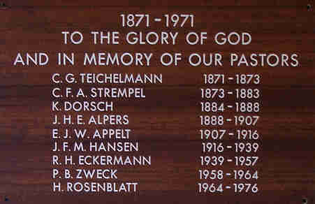 The first stone for this beautiful little church was laid by Pastor Hanson, assisted by Pastor Homann, on 15 February 1925. It had been only a year since the congregation had decided to draw up the plans and specifications. Most of the work was done free of charge by the members of the congregation. It was opened on 20 September of the same year. When finished it had cost a total amount of 2,016. However within six years this amount had been paid off and the church was free of debt. Although the church was brand new, some items were slightly second hand. The organ had already been in use for six years while the church bell had been used for some twenty years. Nobody was complaining though as this was actually the third church they had build since 1871. ****